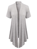Casual Basic Lightweight Solid Short Sleeve Open Drape Front Jersey Cardigan