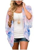 This cool and breezy short kimono is made from a lightweight fabric and features a trendy tie-dye pattern
