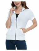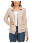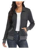 FRONT POCKETS. Our stand collar jacket with pockets was designed for the fashion woman. Don't want to carrry a small item, Not to worry, this womens sweatshirt jacket has two front pockets to store your wallet, smartphone and keys, or keep your hands warm in them.
