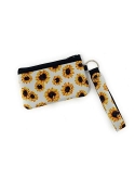 Zipper Closure Cute Sunflower Pattern Made of Neoprene with Silver Keychain Plastic Storage Pouch Inside for Cards and ID Measures 5 1/4" Wide X 3 1/3" High Not Including Wrist Strap
