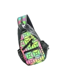 PU Leather Luminous Surface: Under the normal daylight, this geometric backpack presents dark purple and dark green, but when a strong flash hits its surface, its color will be light, especially at night, it is particularly attractive.