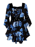 MODERN MEDIEVAL: Our Renaissance Top evokes magical times of yore with a faux corset lace-up on the lace-trimmed bodice.