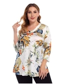 FEATURES: Plus Size Henly Shirts 3/4 Sleeve/Sleeveless Three Style .Plull on,V Neckline, Casual Loose Fit,Flowy Bottom Hem, Plus Size Tops for Women.