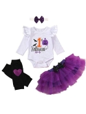 Fancy Dress Costume: 1st Halloween baby girls outfit, 4Pcs set, coming with cute festival pumpkin printed romper, ruffle tulle skirt tutu dress, bowknot headband and winter leg warmers. Classic Halloween costume, a perfect gift for 0-12 months newborn infant toddler baby girls.