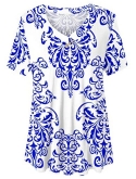 FEATURESShort Sleeve/ Vintage Button/ Flowy Tunic Top/ V Neck/ Flare Style/ Hit at Hip