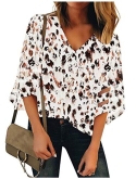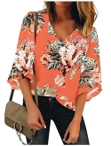 Summer tops for women casual; Stylish casual blouse comes with sexy V neckline and 3/4 bell sleeves.
