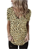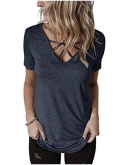 Features: Short sleeve top, V neck top, Criss cross tunic tops, Casual blouses, Relaxed fit.