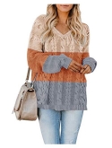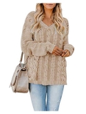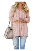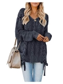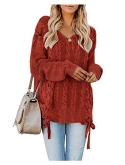 The Chic Pullover Sweaters for Women Features Knitted, Sexy V Neck, Tie Bangdage Knot, Baggy and Oversized Cutting, Loose Fit, Casual Style. A Cute Womens Sweater Outwear in Fall and Winter.