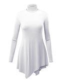 Features: Asymmetric Hemline, Turtleneck, Wooden Button, Two Front Pockets, Casual Loose, Long Sleeves, Hits at Hip