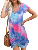 Features: Hollow out v neck, short dress, front tie, twist knot, sweet & cute, soft and attractive.