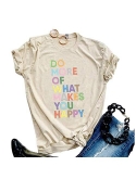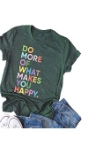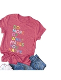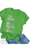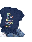 Women's Fun Happy Graphic Tees Summer Cute Round Neck Short Sleeve Letter Printed T-Shirts