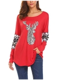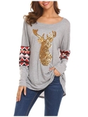 Feature:Cute Geometrical Printed Patchwork,Loose Fit Christmas Tshirts,ELK Party Blouse for New Year