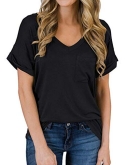Classic v neck shirt,simple and plain,cute pocket design,front tucked or twist a knot add a beautiful details to this casual tops,allows you come with a various look from comfy to chic and fashion.