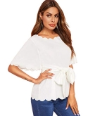 Elegant Design: Scalloped neckline and hem, scalloped cuff, short sleeve, classic color, adjustable belt which you can tie to bowknot, show your slim waist