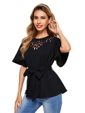 Gorgeous short sleeve blouse for office work ladies, women and juniors. Pair this women fashion top with your skirt, jeans, pants or leggings