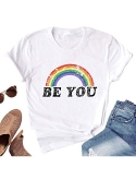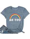 FEATURES: "Be you" letters printed, cute vintage rainbow graphic print will let you get attentions in the crowds. Casual short sleeve shirts, suitable for spring, summer, fall or winter. Round neck design, no tight feeling around your neck.