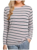 FASHION STYLE: Long sleeve & Round neck & Stripes printed & Silm fitted