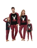 Unique Christmas Design: The cute family holiday pajamas set holiday-inspired design, with cute deer printed, long sleeve round neck tops, classic printed long pants, elastic waistband design for easy wearing,2 pcs loungewear set, black and red plaid splice.This unique family pjs will bring you more fun and warm, while getting along with your family.