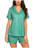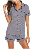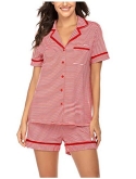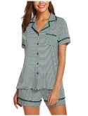 Two pieces striped comfort pajama set lingerie sleepwear featuring a short-sleeve top and matching shorts