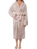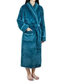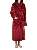 PERFECT FIT AND FUNCTIONAL Comes with a waist strap so you can adjust for perfect fit and 2 side pockets to keep all your essentials! The shawl collar neck is a classic and keeps your neck comfortable and warm. Long length robe with long sleeves for soft and snuggly warmth after spa, bath, or shower.