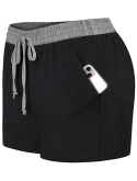 Style:Color Block,Elastic Waistband,Drawstring,Side Pockets, Inner layer,Non See-through Fabric.