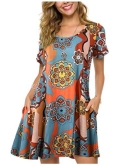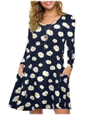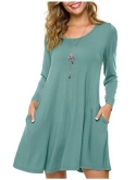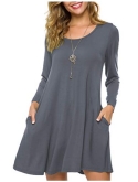 This T-shirt dress featuring a scoop neckline, long sleeves, on-seam pockets, and a swing silhouette