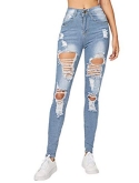 Features: Casual Pants, Ripped, Skinny, Blue Jeans, Mid Waist, Long, Straight Leg, Semi-stretch fabric, Traditional pocket, Front Zipper & Button Closure