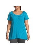 A wide band of daisy-design crocheting follows the front neckline of this pretty tunic Lightweight, slub fabric adds a textured look Wide, ribbed neckline Raglan sleeves and high/low hem for a modern look Tag-free