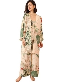 Features: 3 pcs, Leaf Print, Spaghetti Strap, Robe Sets
