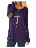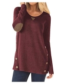 Feature: Casual, Elbow patch, Solid color, Long sleeve, Crewneck, Button decoration, Loose fit, Comfy tunic tops. Nice long sleeve tee for the women, ladies, junior.