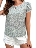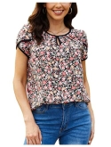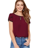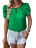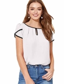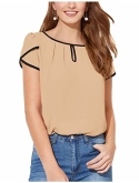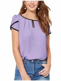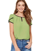 Feature: Round Neck, Petal Sleeve, Contrast Binding, Cap Sleeve Top, Elegant, Regular Fit, Short Sleeve
