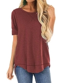 Features: Short Sleeve,V-Notch Round Neck,Solid, Plain,Lightweight,High low hem,Cotton tee,Loose casual shirt.