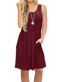 Features: Casual dress, Round neckline, Fit top, Sleeveless, Two Side Pockets,Knee Length or Above Knee, Not lined, soft and stretchy.