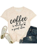 FASHION DESIGN: Coffe is always a good idea shirt, funny letter print tee shirts,a cute coffee cup printed next to the letters,making the t-shirt not only fashionable but also cute.