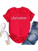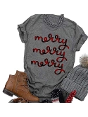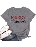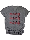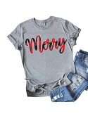 Women's Buffalo Plaid Tees Casual Short Sleeve Merry Letter Print Graphic Blouse Tops