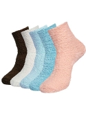 GOOD MATERIAL - Super soft warm microfiber stretchy women fuzzy socks are made of hagh quality material. One Size: 9-11 (fit women's shoe sizes 6-10). The elastic bands at the ankle do not compress your legs giving you the best, comfortable wear experience for everyday activities and even during sleep.
