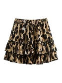 Casual basic style, above knee/short, tiered layer, drawstring, ruffle hem, A line skater skirt,