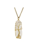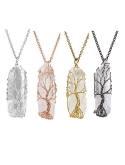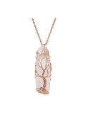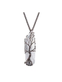 Unique Design Pendant--tumbled stone Tree of life entwined cut raw rock crystal quartz Column