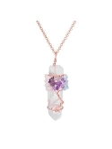 Rock crystal quartz Column Size:45-60mm(length),12-18mm(width);tumble stones size:5-8mm;Pendant overall size:52-68mm(length),12-18mm(width),4mm(hole).Chain length:24"-25.5"(61-64cm).