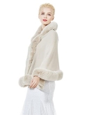 SHADE --- The shawl without a pattern is matched with faux rabbit fur trim, which is very simple look. The faux fur is made of environmentally friendly materials, soft and smooth, without odor.