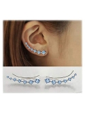 How insert and position 1) Insert the earring post into your piercing hole as you would a regular earring. 2) Curve the earring up and over the edge of your ear (you might need to use both hands, one to hold the earring and the other to tug your ear lobe through the two sides). 3) Once its in position, squeeze the front and back together a bit to keep it in place. Make sure you use the correct earring for your left and right ears. You want the curve to follow the natural shape of your ear!