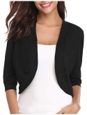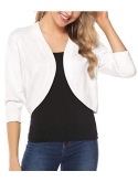 Feature: 3/4 sleeves shrug, Open Front cardigan, Solid color bolero jacket, Shrug Cropped Cardigan