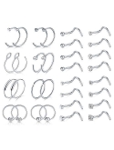 20G Nose Ring Hoop-14pcs-21pcs Nose Rings Studs Piercings Hoop Jewelry Stainless Steel Nose Rings