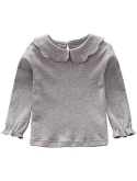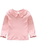 Baby girl's blouse solid color long sleeve peter pan collar T-shirt kids basic shirt bottoming top fits for 1-7 Years kids girls ; suitable for daily wear,school uniforms etc.