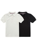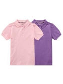 Design: Short Puff Sleeve, Side Slits, Decorative Neck Tape, Front Placket Buttons,School Uniform Polo