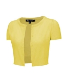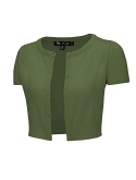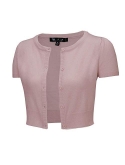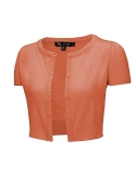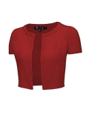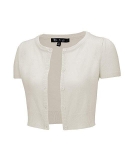 This Ladies' Cropped, Fitted Short Sleeve Cardigan Sweater with Buttons is Versatile, Light and Vintage-Inspired. Soft and Cozy Acrylic Blend.
