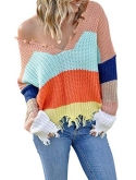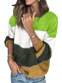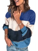 Design:eye-catching striped and color block design,with ribbed details at hem,crew neck,long sleeve,loose fit,soft knitted fabric
