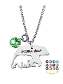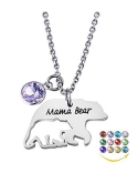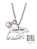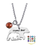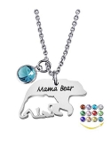YOUFENG Mom Necklace Mama Bear Necklaces Pendant 12 Months Birthstone Jewelry for Women Girls