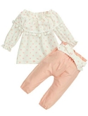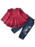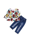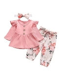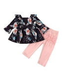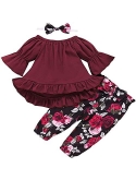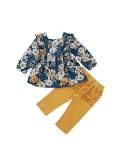 Toddler girl outfits,bright color and ruffle shoulder design,long sleeve tshirt and flower trouser,make your baby more adorable.