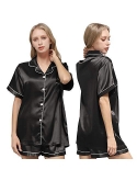 H TYPE ERGONOMIC DEGIGNLadies satin pajamas sets use the ergonomic H-shaped loose design, and does not require you to have a slim body. The ladies pajamas uses classic V-neck and button down design; The pocket in the chest allow you store some small stuff. Elastic waistband that its tightness is suitable is easy to wear.